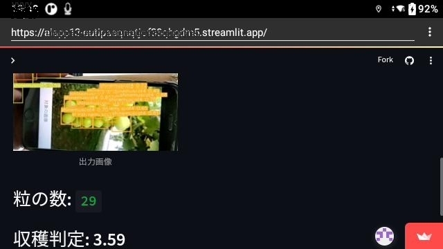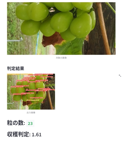 2.シャインマスカットの収穫支援アプリ(YOLO-V5を用いた粒カウント、5段階収穫判定)
